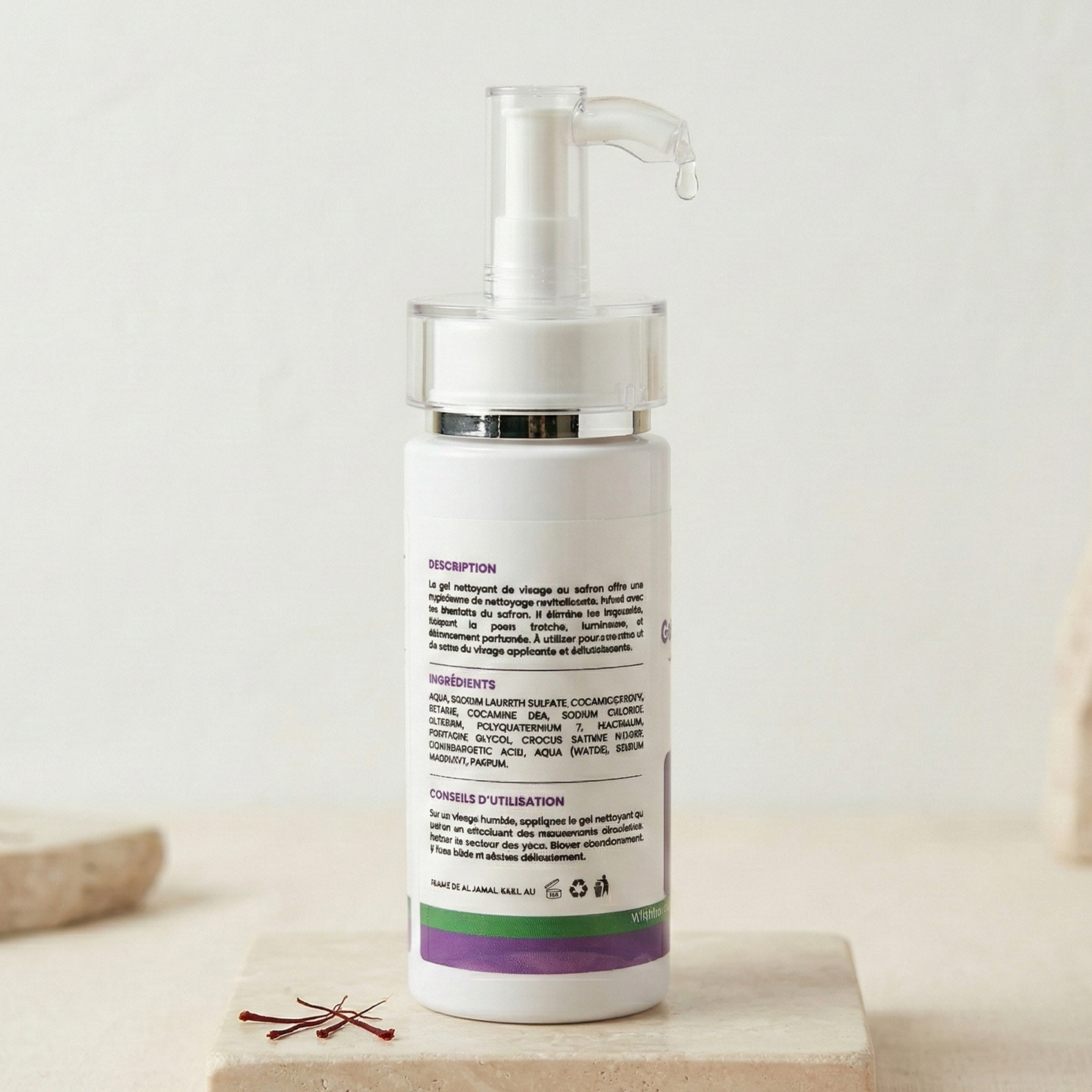 جل تنظيف بالزعفران ينقي ويفتح البشرة مع الحفاظ على توازنها الطبيعي.