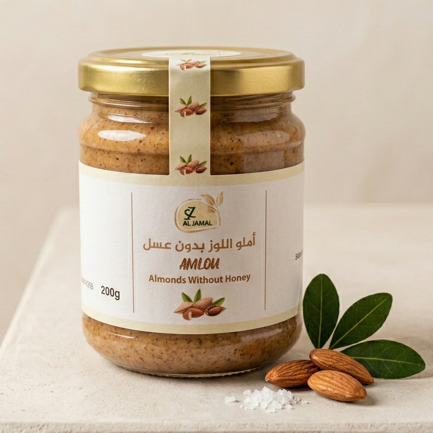 Artisan almond paste with natural honey, available in 200g and 500g, rich in proteins, antioxidants and healthy fats.