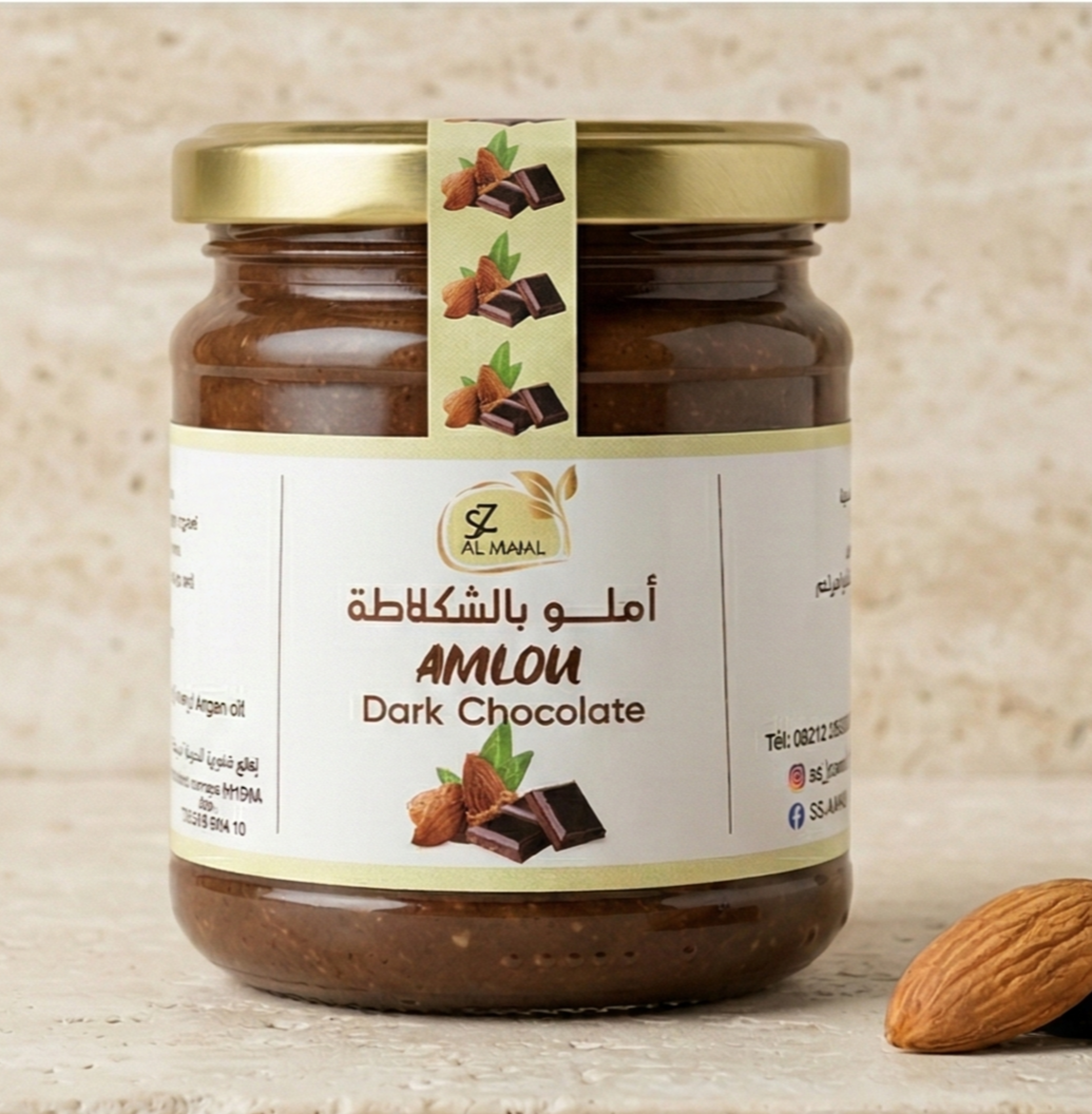 Gourmet amlou paste with chocolate and hazelnuts, blended with argan oil and natural honey.