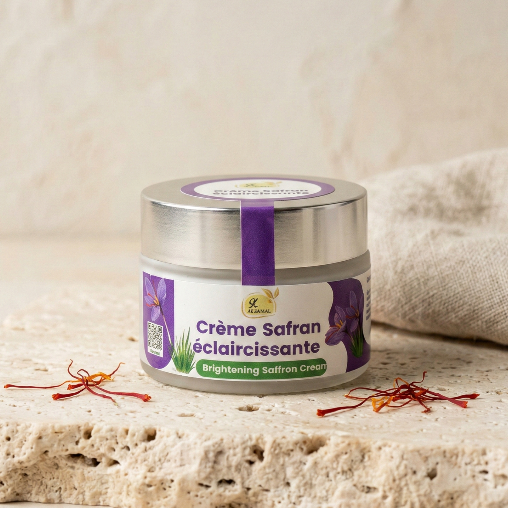 Lightweight saffron cream that illuminates, unifies, and intensely hydrates the skin — paraben-free.