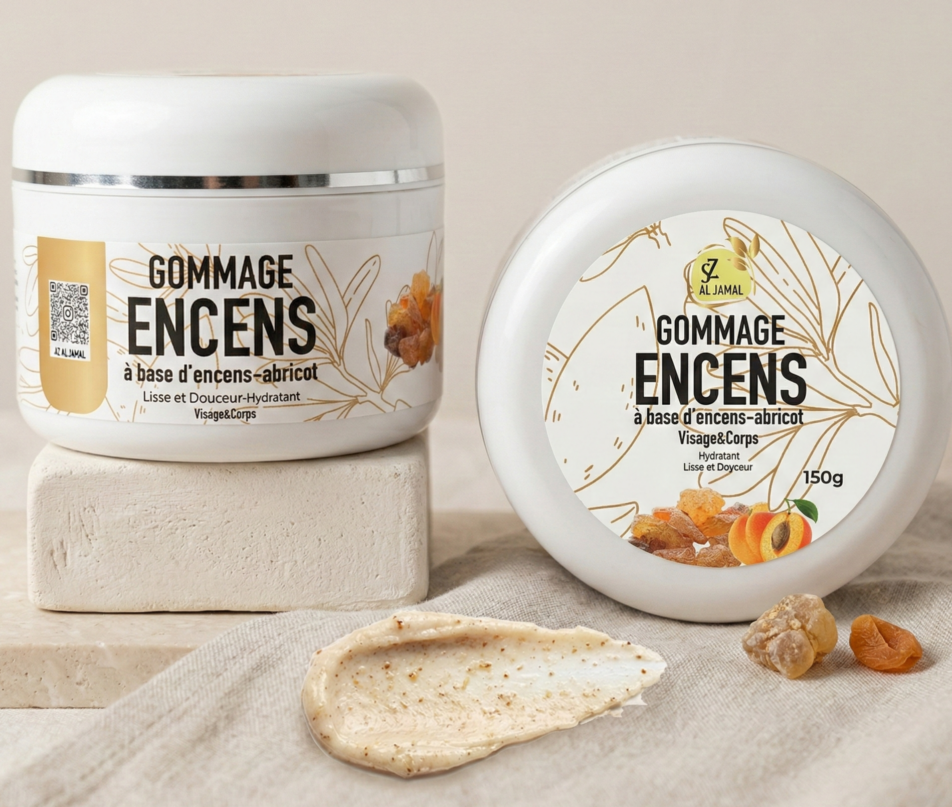 Face and body exfoliating mask with white clay and vitamin C for gently purified, silky-smooth skin.