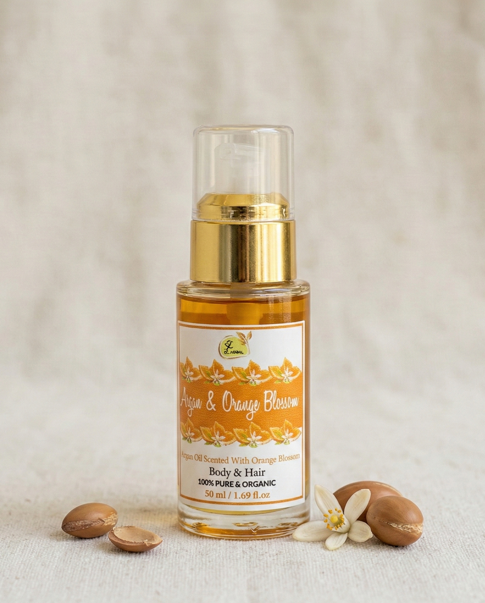 Luxurious argan oil scented with orange blossom to nourish skin and hair with a delicate floral fragrance.