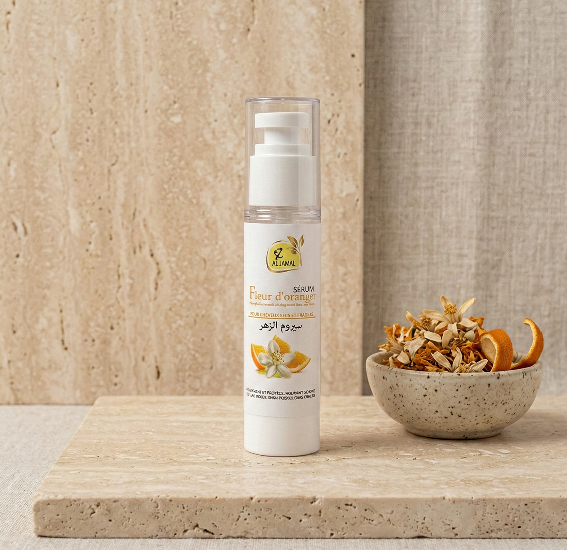 100% natural orange blossom hair serum — nourishes, softens and leaves hair with a delicate floral fragrance.