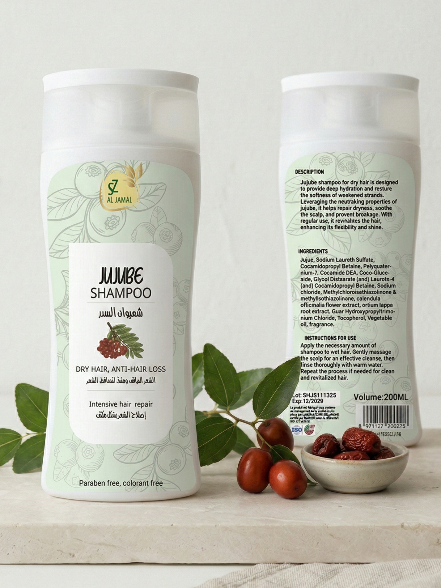 Paraben-free jujube shampoo — anti-loss for dry hair, purifying for oily and fragile hair.