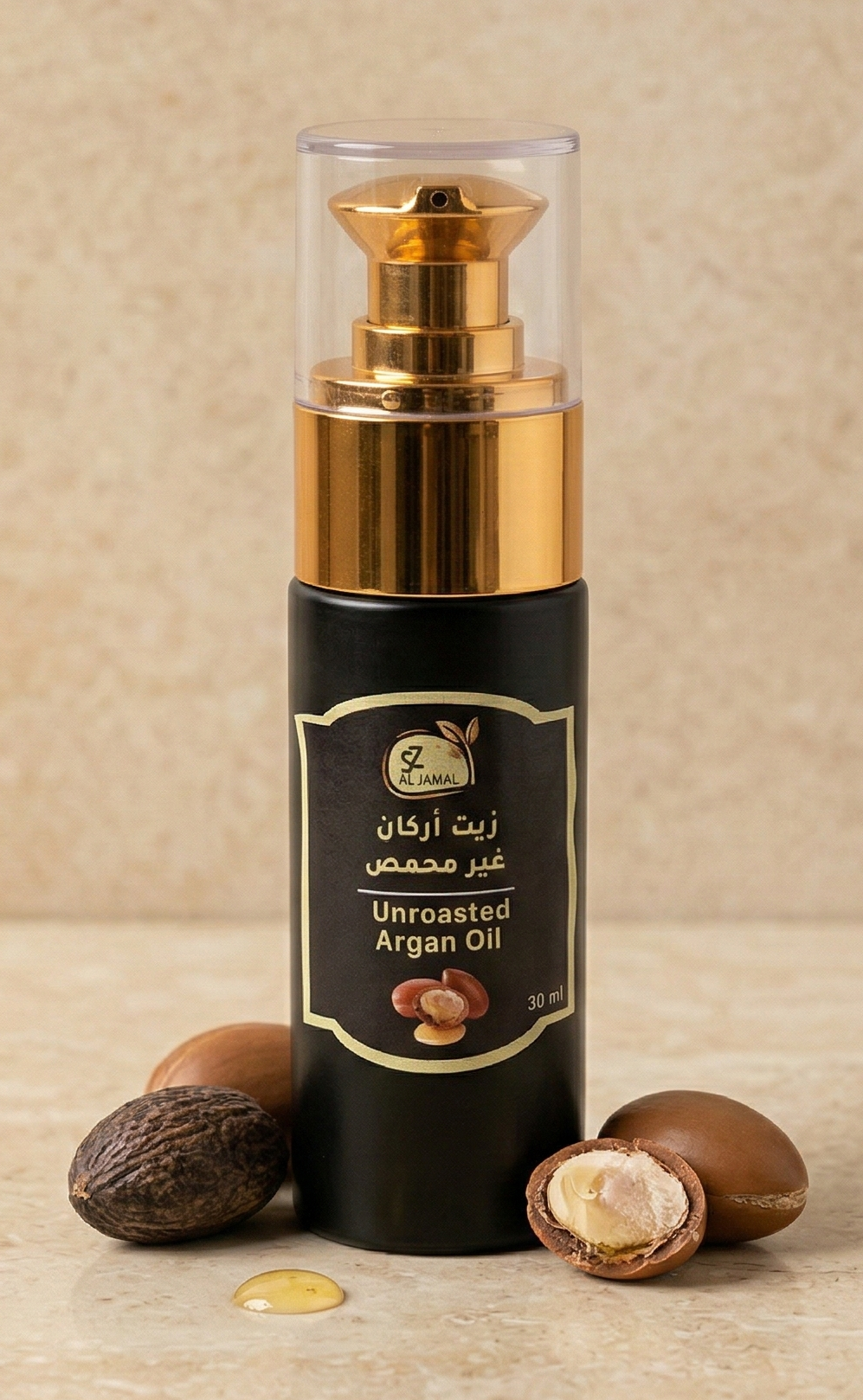 100% pure unroasted argan oil, cold-pressed for hair, skin, and nails.